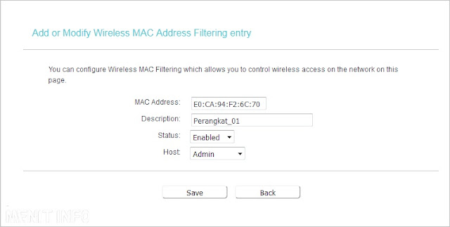 Dengan begitu yang dapat mengakses WiFi kalian hanya perangkat dengan MAC Address yang tadi anda masukkan. Jika ingin menambah perangkat lain seperti Smarphone supaya bisa menggunakan jaringan WiFi, kita perlu menambah MAC Address baru sesuai langkah ke 3 di atas. Jadi walaupun password WiFi kita telah diketahui oleh orang lain, tetap tidak bisa diakses.